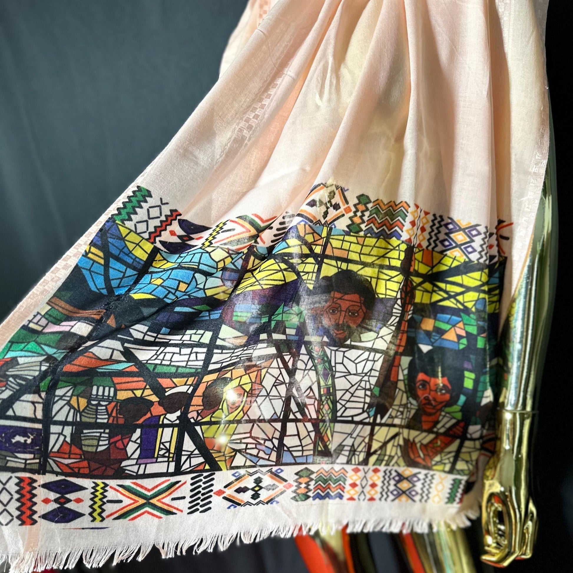 Ethiopian Art Scarf: Habesha Style Afewerk Tekle Print, Elegant Cotton Fashion for Women, Traditional Cultural Outfit, Celebration Accessory